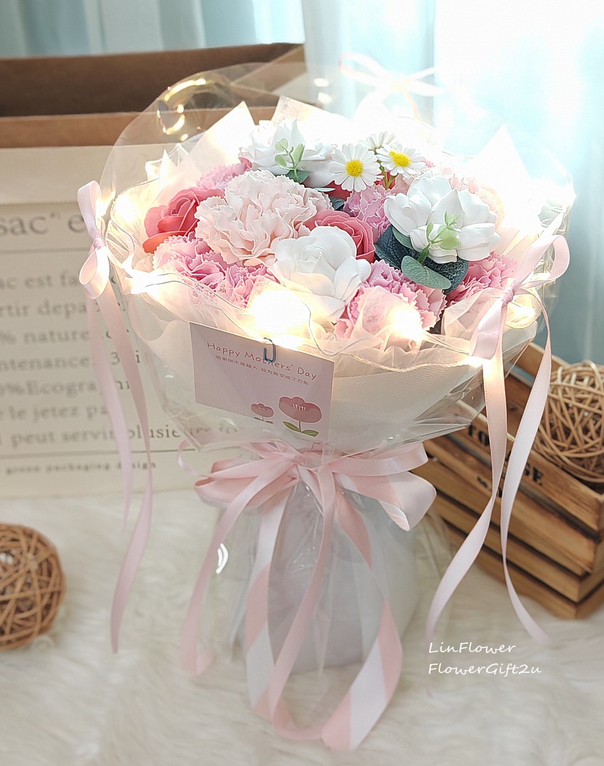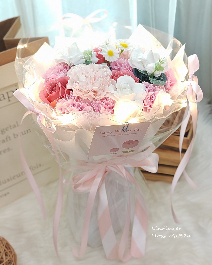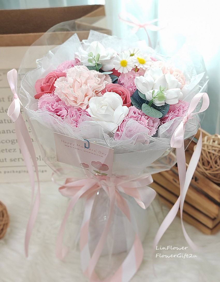 - 8-9 stk Soap Carnation Bouquet / 5 stk Awakening Soap flower Rose Mix